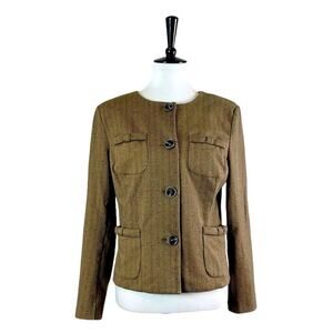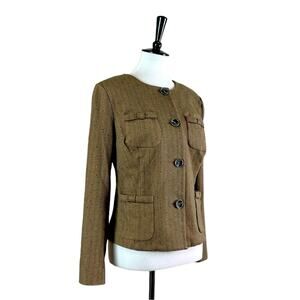 Cabi Blazer Penny 3170 Herringbone Button Front Collarless Brown Women’s Small