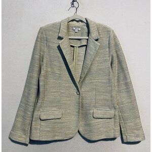Cabi Blazer Womens 14 Lemon Zest Stretch Tweed Pockets Button Preppy Academia