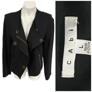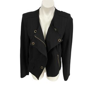 Cabi Blazer Womens Large Style 615 Black Asymmetric Ponte Knit Moto Jacket Work
