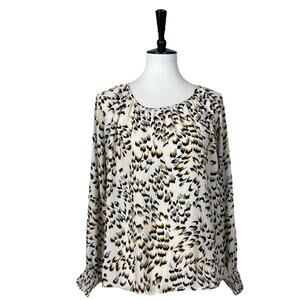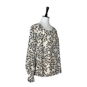 Cabi Blouse #4335 Leopard Safari Top Pleat Neck Long Sleeve Women’s Size Small