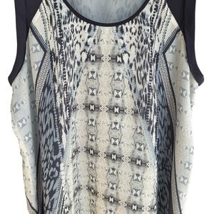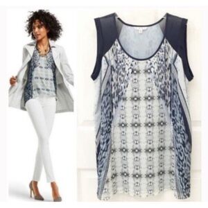 Cabi Blouse Blue Sleeveless Medium Chiffon Print Work 253