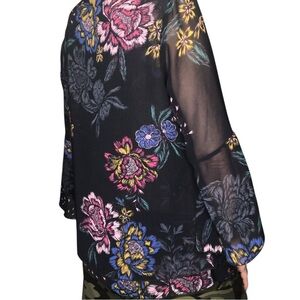 Cabi Blouse Whimsigoth Top Women Sz S Dark Floral Romantic Tunic Sheer Bell