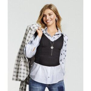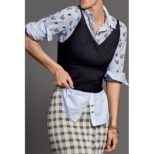 Cabi Blue Floral Pinstripe Button Up Shirt Smocked Ruffled Sleeve Women Sz M