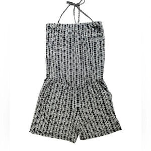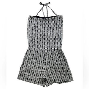 Cabi Blue Mosaic Tile Strapless Halter Romper