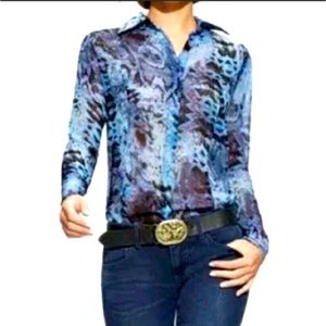 Cabi Blue Python Sheer Blouse