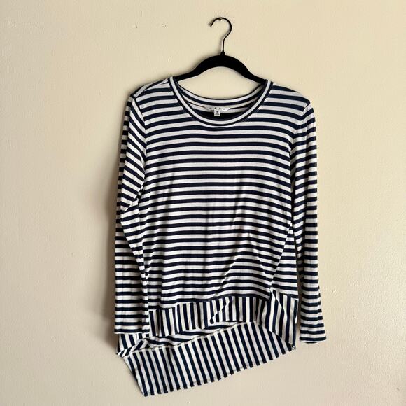 Cabi Blue + White Bengal Stripe Asymmetrical Long Sleeve Tee - Small
