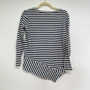 Cabi Blue & White Striped Asymmetrical Hem Blouse XS Boat Neck Nautical Top