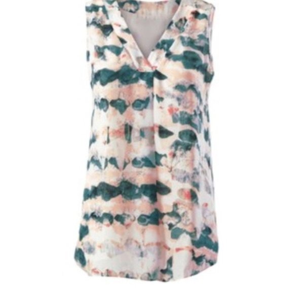 Description: Blush Gelato watercolor sleeveless V-neck Oversized Flowy blouse tank, lined, side splits, machine washable