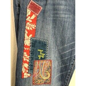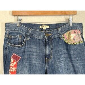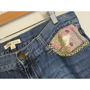 Cabi Boyfriend Jeans Patchwork Boho Embroidered Cropped Size 6 #887 Denim Hippie
