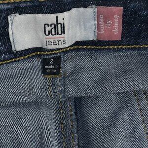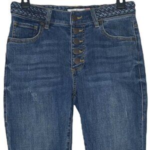 Cabi Button Fly Skinny Womens Jeans Size 2 Mid Rise Braided Waistband #5694 Blue