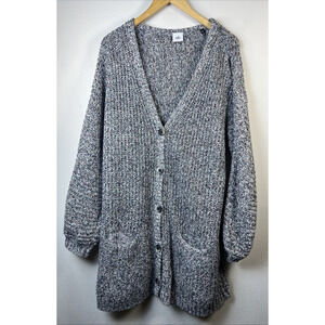 Cabi long sleeve v-neck button front long sweater gray with multicolor knit S