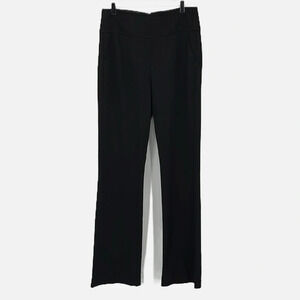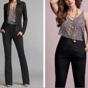 Cabi Camden Trouser Pants in Black - Size 10 (Long). Excellent pre-owned, like new condition. High rise, hidden back zip closure with hook and eye, 2 front slant pockets, 2 back non-functional button welt pockets, boot cut leg hems. Approximate measurements: 15 3/4" waist, 12 1/2" rise, 35" inseam.