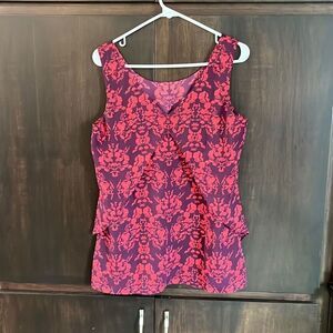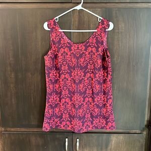 Cabi Cameo Print Tank Top Shirt Blouse Purple Red Medium #3258