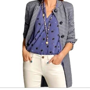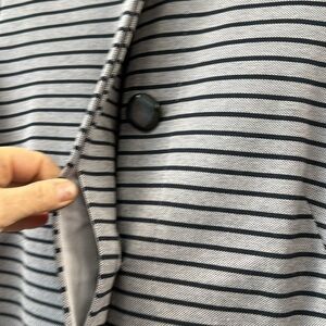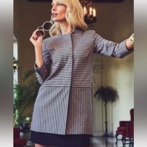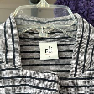 Hashtags: #Cabi #CarCoat #StripedJacket #MinimalistFashion #TimelessStyle #SizeSmall #ClassicLook #LightweightCoat #TrendyOuterwear