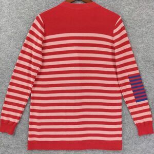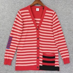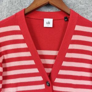 Cabi Cardigan Sweater Womens Sz S Red Pink Striped Button Front Style Quirky