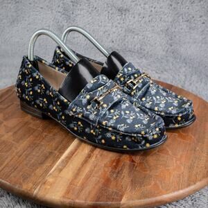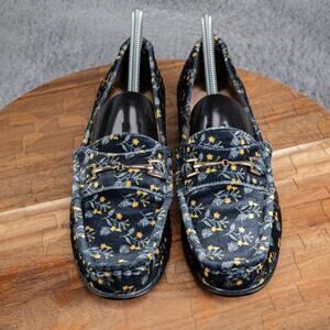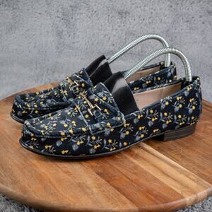 Cabi Carnaby Blue Velvet Floral Loafers Womens Size 8