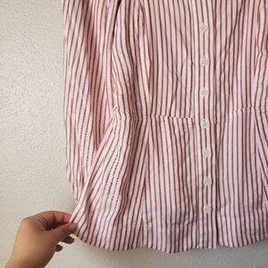 Cabi Carnival Striped Button Front Square Neck Puff Sleeve Blouse Womens S