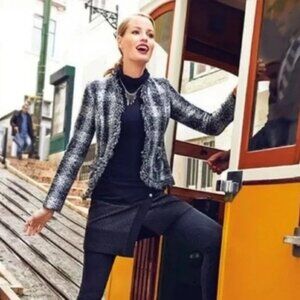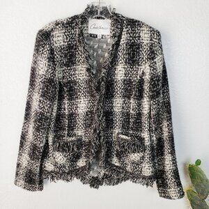 Carol Anderson Cabi Best in Show Black & White Plaid Tweed Jacket Blazer.