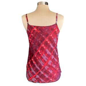Cabi Cherish Chiffon Red Geometric Print Tank Top SMALL Casual Vacation Summer. Fully lined. Adjustable spaghetti straps. In excellent preowned condition.