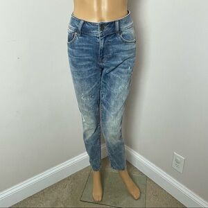 Cabi Cinch Skinny Jeans Style #5492 Distressed Bleach Splatter Blue Size 4