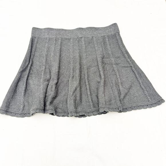 Cabi Circle Skater Pleated Skirt Knit Gray 100% Cotton Size XL