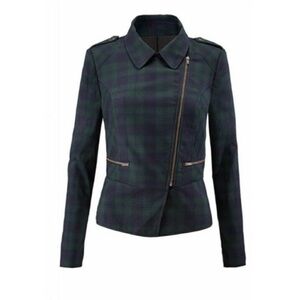 Cabi Classic Tartan Plaid Checkered Moto Coat / Jacket. Long Sleeves. Front Zipper Closure. 2 Side Zipper Pockets. Peplum Style Details. Super Cute & Comfy. Great Condition. No Stains or Rips.
