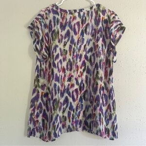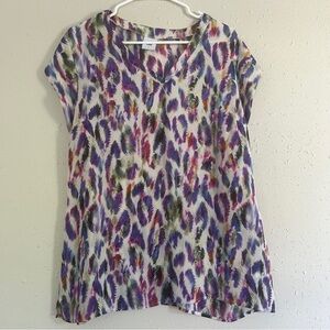 Cabi Colorful Rainbow Lightweight Short Sleeve Blouse Casual Summer Large