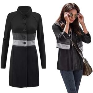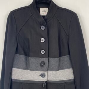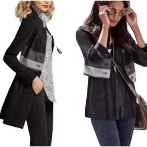 Cabi Love Carol Collection Osaka Nights Convertible Jacket Zipper Waist Longline Crop Button Front Black Gray