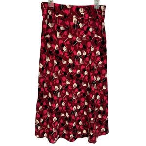 Cabi Corsage Floral Midi Skirt Wine Blossom Red High Low Feminine Flowy Size 4