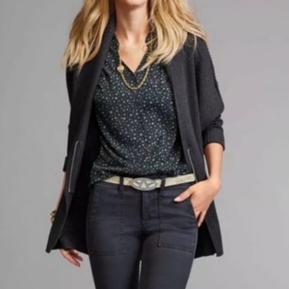 Cabi Cosmo Cardigan Ribbed Sweater Small Gray