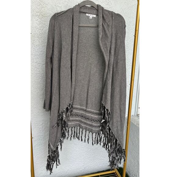 Cabi Cotton Knitted Cardigan Boho Country Style Gray Small Fringe