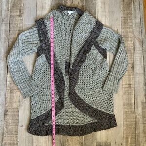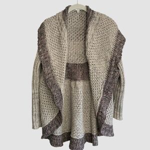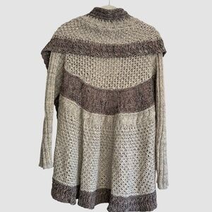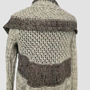 Cabi Crochet Knit Mixed Stitch Grey Brown Cardigan Shawl Cotton Sweater SZ S