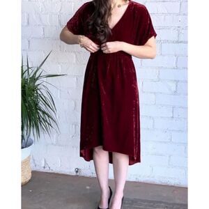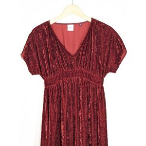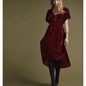 Cabi Crushed Velvet Burgundy Grace Tribute Dress Sz XS Empire Waist Whimsygoth