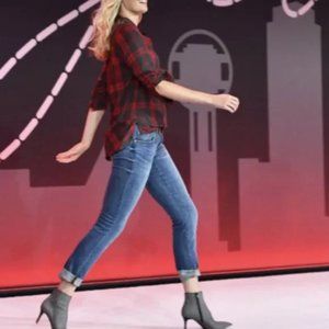 Go mad for plaid with this lightweight piece featuring a button-front with a hidden placket and back shirttail hem.
