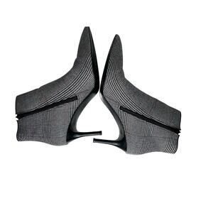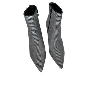 Cabi Dandy Red White Black Plaid Heeled Pointy Toe Ankle Boots Size 8
