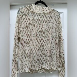 This elegant cream blouse features a delicate ruffle design, perfect for adding a touch of sophistication to any outfit. Ideal for both casual and formal occasions.