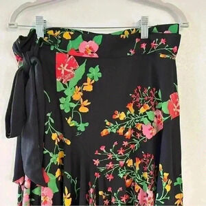 Cabi Drama Skirt Black Floral Print Black Wrap Midi Style Size Medium Womens