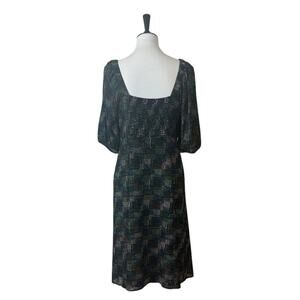 Cabi Dress Sweetheart Neck Ruching Smocked Black Green Multi Women’s Size Medium