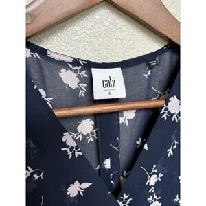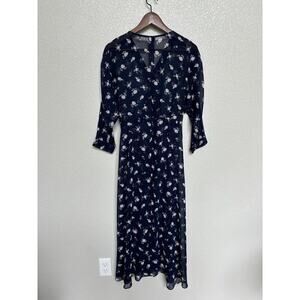 Cabi Dress Womens 6 Dream Midi Sheer Navy Blue Floral 3/4 Sleeve No Liner boho