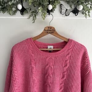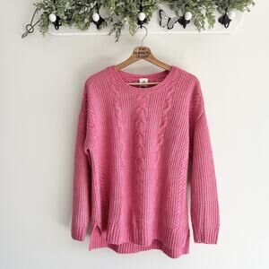 Cabi Elsa Bubblegum Pink Soft Cotton Blend Cable Knit Popover Sweater KD medium