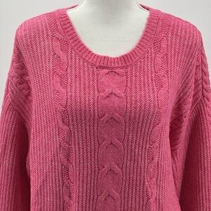 Cabi Elsa Cable Knit Crewneck Pullover Sweater in Pink - Size Medium