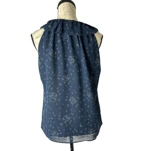 Cabi Ever Tank Top Floral Navy Blue Split V Neck #3984 Women's Small