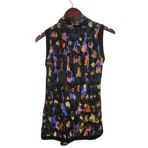 Cabi Faux Wrap Sleeveless Top Blouse Abstract Watercolor XS #3077