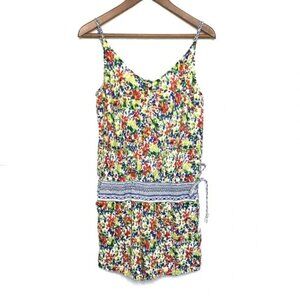 Show off your radiance in this casual yet ultra-feminine one-piece. With its sweet ditsy floral pattern and batik-inspired waistbnd, this romper is ideal for strolling the bordwalk, hitting an outdoor music festival, or embarking on whatever adventure the weekend holds.