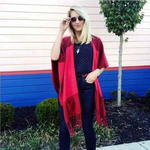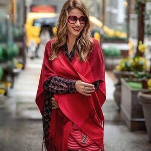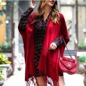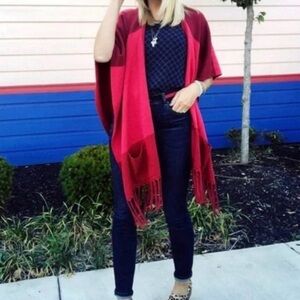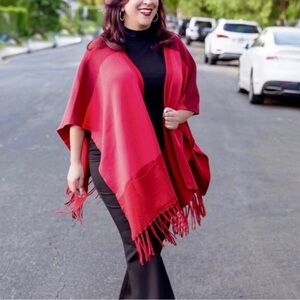 Cabi Firebrick Red Fringe Poncho Wrap Cape Shawl