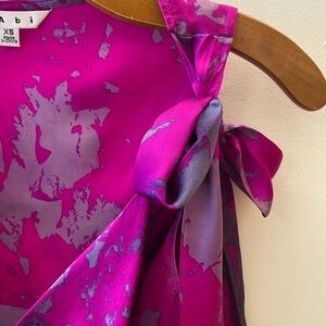 Gorgeous bright pink and purple dyed silk tie neck tank blouse. Soft and feminine. Figure flattering fit. Gently worn condition. Pit to pit measures approximately 16”. (Z)