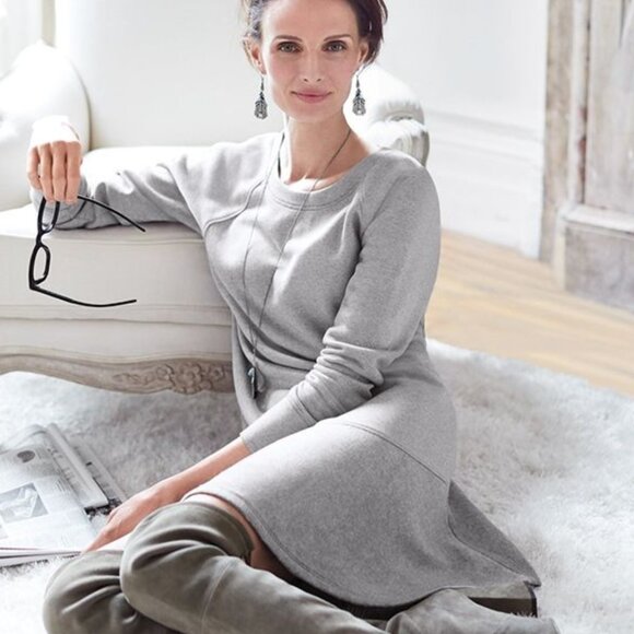 Super soft & cozy, gray Cabi "Flashdance Dress" (style 3459) - only worn once! EUC. Very comfy and classy. Can be worn w/ tights or leggings as a mini dress or tunic length top. Can be dressed up or down.