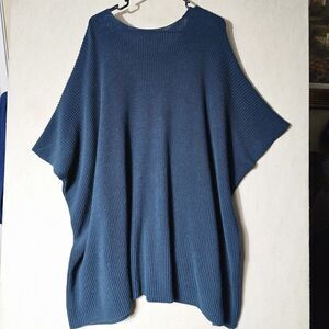 Cabi Flex Poncho Sweater Teal Size M/L Knit Pockets Batwings Oversized Stretchy