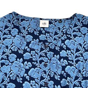 Cabi Floral Java Dress Blue Drawstring Waist Size Small