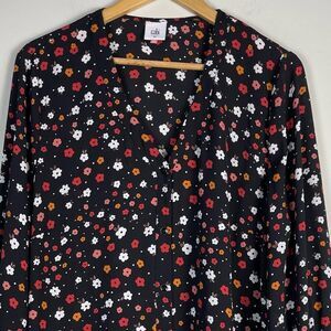 Cabi Floral Print Full Button Down Top Size XL Mixed Media Striped Jersey Cuff